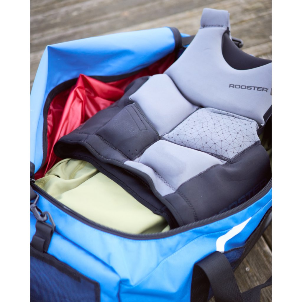 Taška Rooster® Carry All je k dispozici ve velikostech 60L a 90L. Verze 90L má obrovskou kapacitu, do které se vejde veškeré potřebné vybavení. Součástí je odnímatelný polstrovaný ramenní popruh, uzamykatelné odolné zipy YKK® na hlavní přihrádce a vnitřní síťované kapsy na vaše cennosti. Tato taška má velkou samostatnou kapsu na mokré věci, přístupnou po celé délce tašky, která je podlepená a zcela vodotěsná. Na vnější straně jsou také čtyři vnější síťované kapsy pro snadno dostupné praktické předměty – svačinky, burger, šampon…